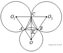 а центр третьей за O. Тогда точки касания лежат на сторонах