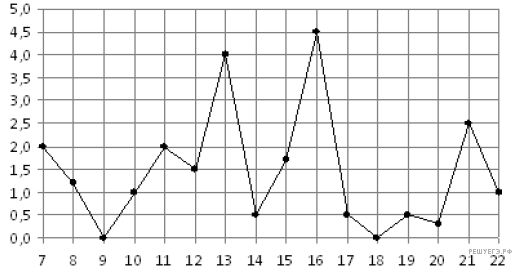 На ри­сун­ке жир­ны­ми точ­ка­ми по­ка­за­но су­точ­ное ко­ли­че­ство осад­ков, вы­па­дав­ших в Мур­ман­ске с 7 по 22 но­яб­ря 1995 года. По го­ри­зон­та­ли ука­зы­ва­ют­ся числа ме­ся­ца, по вер­ти­ка­ли  — ко­ли­че­ство осад­ков, вы­пав­ших в со­от­вет­ству­ю­щий день, в мил­ли­мет­рах. Для на­гляд­но­сти жир­ные точки на ри­сун­ке со­еди­не­ны ли­ни­ей. Опре­де­ли­те по ри­сун­ку, ка­ко­го числа за дан­ный пе­ри­од впер­вые вы­па­ло ровно 0,5 мил­ли­мет­ра осад­ков.