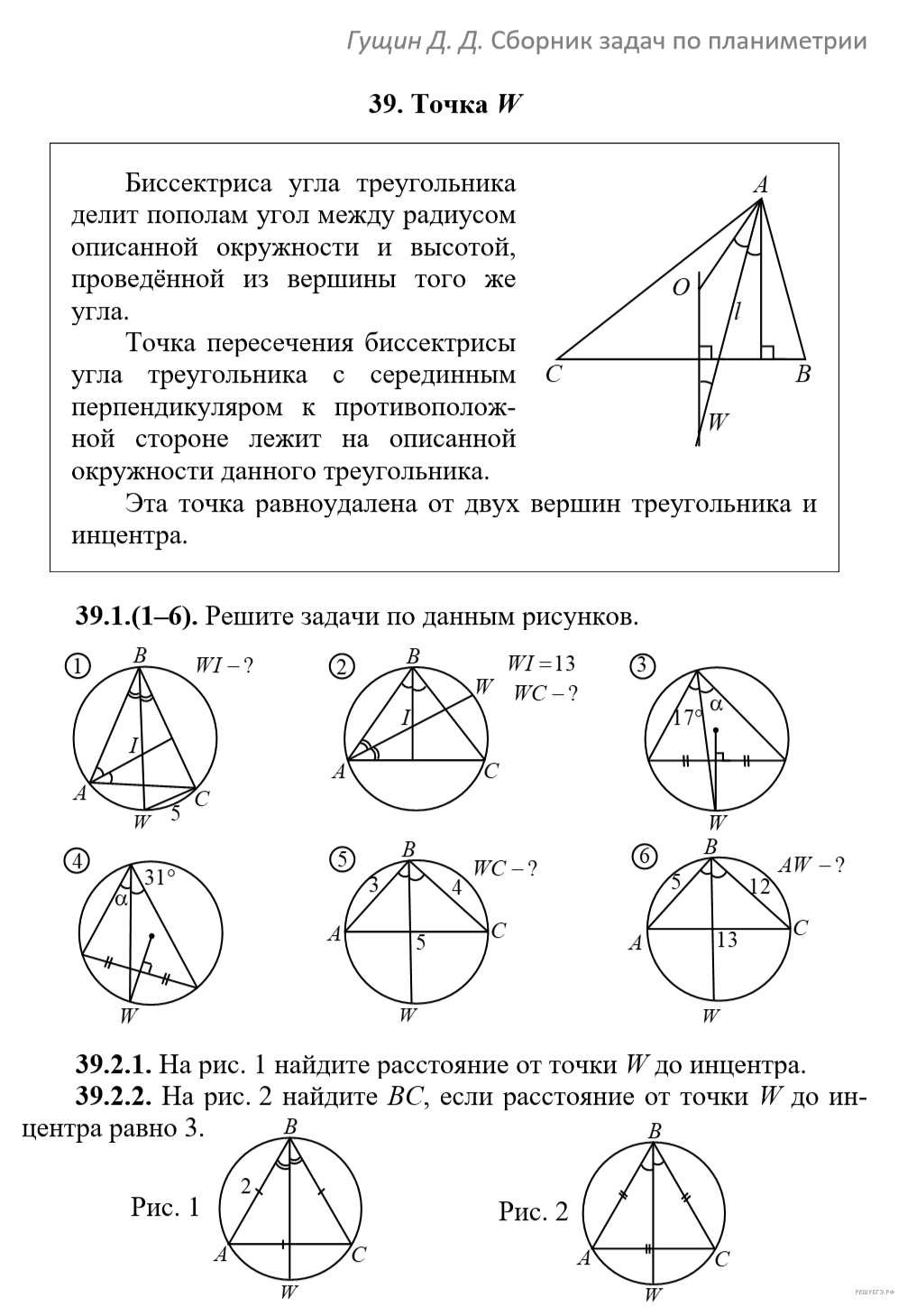 1. Биссектриса угла треугольника делит пополам угол между радиусом описанной окружности и высотой, проведённой из вершины того же угла.