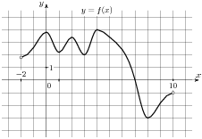 На рисунке изображен график функции y = f(x), определенной на интервале (−2; 12). Найдите сумму точек экстремума функции f(x).