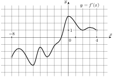 На рисунке изображен график производной функции f(x), определенной на интервале (−8; 4). В какой точке отрезка [−7; −3] f(x) принимает наименьшее значение?