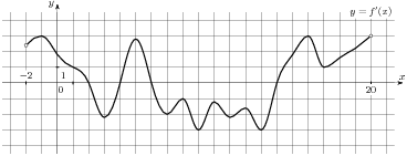 На рисунке изображен график производной функции f(x), определенной на интервале (−18; 6). Найдите количество точек минимума функции f(x) на отрезке [−13; 1].