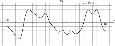 Точки минимума соответствуют точкам смены знака производной с минуса на плюс. На отрезке [−13; 1] функция имеет одну точку минимума x = −9.