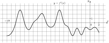 На рисунке изображен график производной функции f(x), определенной на интервале (−7; 14). Найдите количество точек максимума функции f(x) на отрезке [−6; 9].