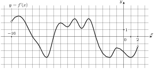 На рисунке изображен график производной функции f(x), определенной на интервале (−7; 14). Найдите количество точек максимума функции f(x) на отрезке [−6; 9].