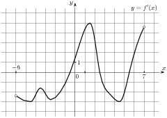На ри­сун­ке изоб­ра­жен гра­фик про­из­вод­ной функ­ции f левая круг­лая скоб­ка x пра­вая круг­лая скоб­ка ,