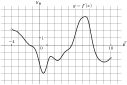 На ри­сун­ке изоб­ра­жен гра­фик про­из­вод­ной функ­ции f левая круг­лая скоб­ка x пра­вая круг­лая скоб­ка ,