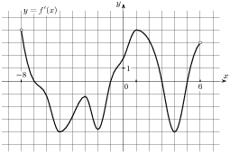 На ри­сун­ке изоб­ра­жен гра­фик про­из­вод­ной функ­ции f левая круг­лая скоб­ка x пра­вая круг­лая скоб­ка ,