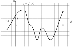На ри­сун­ке изоб­ра­жен гра­фик про­из­вод­ной функ­ции f левая круг­лая скоб­ка x пра­вая круг­лая скоб­ка ,