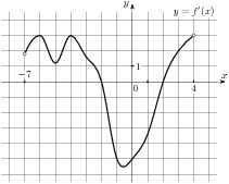 На ри­сун­ке изоб­ра­жен гра­фик про­из­вод­ной функ­ции f левая круг­лая скоб­ка x пра­вая круг­лая скоб­ка ,