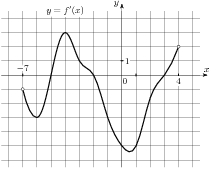 На ри­сун­ке изоб­ра­жен гра­фик про­из­вод­ной функ­ции f левая круг­лая скоб­ка x пра­вая круг­лая скоб­ка ,