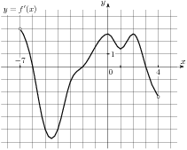 На ри­сун­ке изоб­ра­жен гра­фик про­из­вод­ной функ­ции f левая круг­лая скоб­ка x пра­вая круг­лая скоб­ка ,
