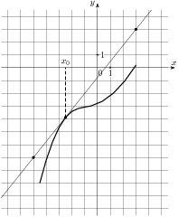 и касательная к нему в точке с абсциссой x0. Найдите значение производной функции f(x) в точке x0.