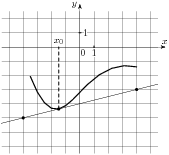 На ри­сун­ке изоб­ражён гра­фик функ­ции y  =  f(x) и ка­са­тель­ная к нему в точке с абс­цис­сой x0. Най­ди­те зна­че­ние про­из­вод­ной функ­ции f(x) в точке x0.