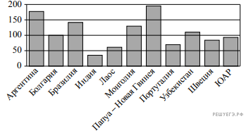 На диаграмме показано распределение выплавки меди в 11 странах мира (в тысячах тонн) за 2006 год. Среди представленных стран первое место по выплавке меди занимала Папуа–Новая Гвинея, одиннадцатое место — Индия. Какое место занимала Болгария?