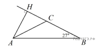 В равнобедренном треугольнике ABC с основанием AB угол В равен 27°. Найдите угол между стороной АС и высотой АН этого треугольника.