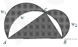 а) Докажите, что площадь треугольника ABC равна сумме площадей двух луночек, ограниченных полуокружностями w и w1 и полуокружностями w и w2.