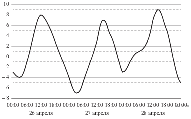 На рисунке показано изменение температуры воздуха на протяжении трех суток. По горизонтали указывается дата и время суток, по вертикали — значение температуры в градусах Цельсия. Определите по рисунку наибольшую температуру воздуха 27 апреля. Ответ дайте в градусах Цельсия.