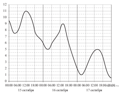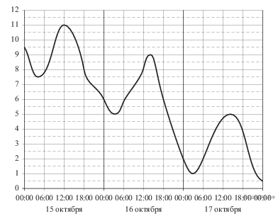 На рисунке показано изменение температуры воздуха на протяжении трех суток. По горизонтали указывается дата и время суток, по вертикали — значение температуры в градусах Цельсия. Определите по рисунку наибольшую температуру воздуха 17 октября. Ответ дайте в градусах Цельсия.