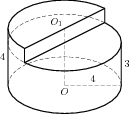 Найдите объем V части цилиндра, изображенной на рисунке. В ответе укажите