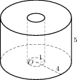 Объем данной фигуры равен разности объемов цилиндра с радиусом основания 5 и высотой 5 и цилиндра с той же высотой и радиусом основания 2: