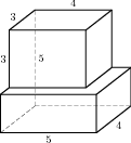 Объем данного многогранника равен сумме объемов параллелепипедов с ребрами 2, 3, 3 и 5, 3, 4: