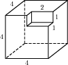 Найдите объем многогранника, изображенного на рисунке (все двугранные углы прямые).Объем данного многогранника равен разности объемов параллелепипедов со сторонами 4, 4, 5 и 1, 2, 1: