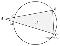 Через вершины B и C треугольника ABC проходит окружность, пересекающая стороны AB и AC соответственно в точках K и M.